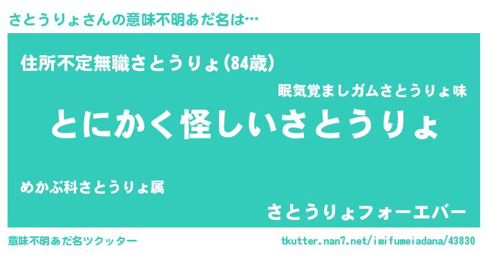 | 女子向けラノベタイトル風あだ名 | 『さとうりょは平凡を望む』 |