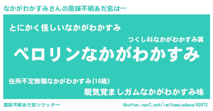 | 胡散臭い通販商品みたいなあだ名 | 『億万長者になれる霊験あらたかなお札…その名も「なかがわかすみ」』 |