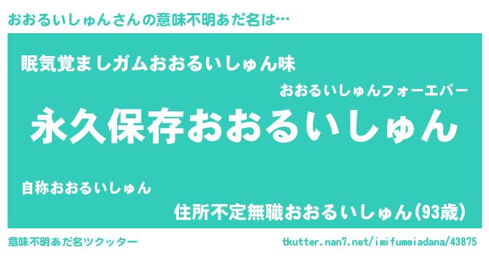 | ヒーロー風カッコイイあだ名 | 『ネオオオルイシュン』『仮面オオダー』 |
