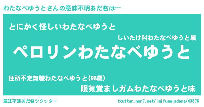 | 胡散臭い通販商品みたいなあだ名 | 『必ず成功するブレスレット…その名も「わたなべゆうと」』 |