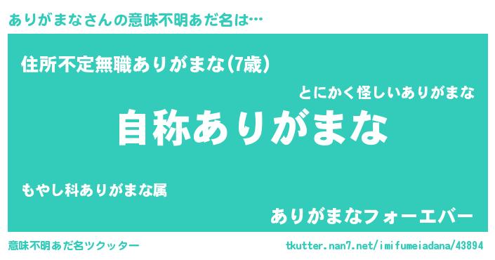 | 胡散臭い通販商品みたいなあだ名 | 『ガンによく効くアガリクス…その名も「ありがまな」』 |