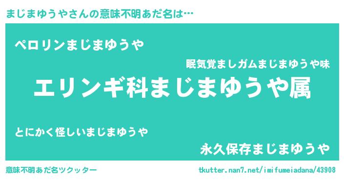 | 欧米人風あだ名 | 『アンジェラ・まじまゆうや』 |