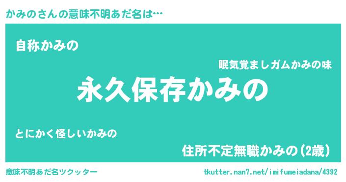 | 胡散臭い通販商品みたいなあだ名 | 『来世でも幸せになれる水素水…その名も「かみの」』 |