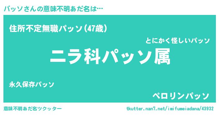 | ヘコむあだ名 | 『パッもー』『パッっ子』『牛乳』 |
