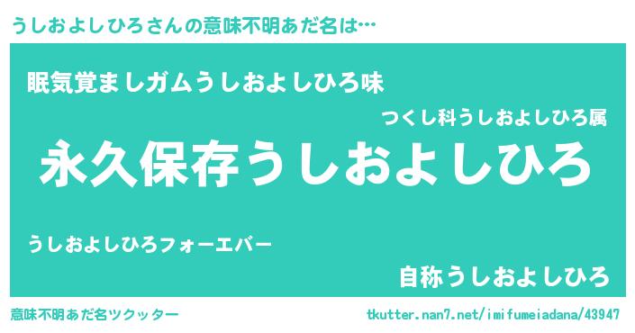 | 男性向けラノベタイトル風あだ名 | 『うしおよしひろという概念が存在しない退屈な世界 』 |