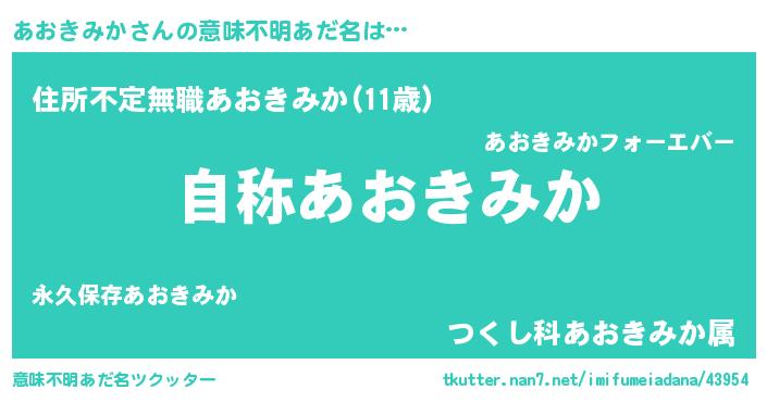 | 男性向けラノベタイトル風あだ名 | 『Re:あおきみかから始める異世界生活』 |