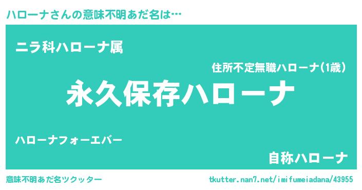 | 男性向けラノベタイトル風あだ名 | 『ハローナという概念が存在しない退屈な世界 』 |