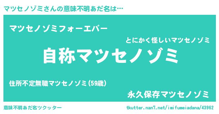 | 欧米人風あだ名 | 『ケンブリッジマツセノゾミ』 |