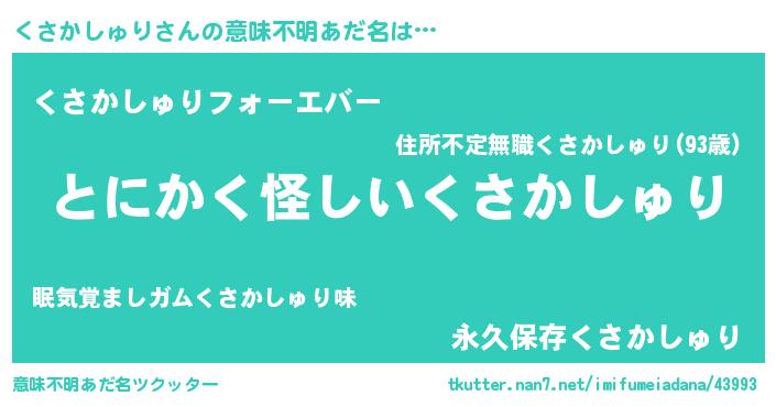 | ポケモン風あだ名 | 『ヒクサカシュリ』『クサカダネ』 |