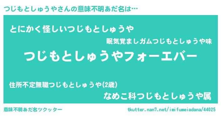 | 男性向けラノベタイトル風あだ名 | 『やはりつじもとしゅうやの青春ラブコメはまちがっている 』 |