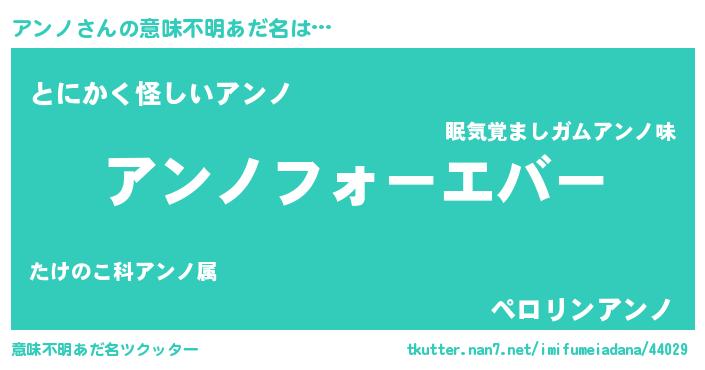 | 女子向けラノベタイトル風あだ名 | 『アンノの雑貨屋さん』 |