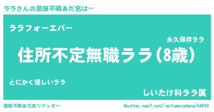 | 男性向けラノベタイトル風あだ名 | 『この素晴らしい世界にララを!』 |