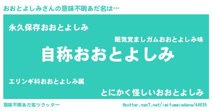 | 胡散臭い通販商品みたいなあだ名 | 『芸能人もオススメする高麗人参…その名も「おおとよしみ」』 |