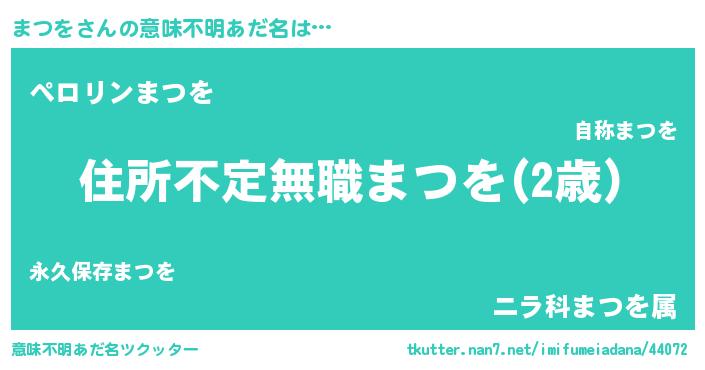 | 男性向けラノベタイトル風あだ名 | 『この素晴らしい世界にまつをを!』 |