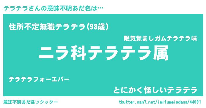 | 男性向けラノベタイトル風あだ名 | 『テラテラ~年齢イコール彼女いない歴の魔法使い~』 |