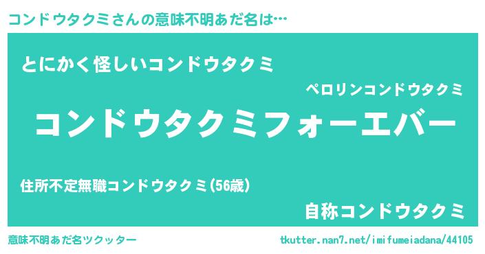 | ファンタジー風あだ名 | 『エターナルコンドウタクミー』 |