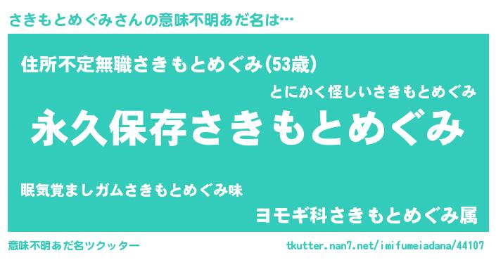 | 胡散臭い通販商品みたいなあだ名 | 『来世でも幸せになれる健康食品…その名も「さきもとめぐみ」』 |