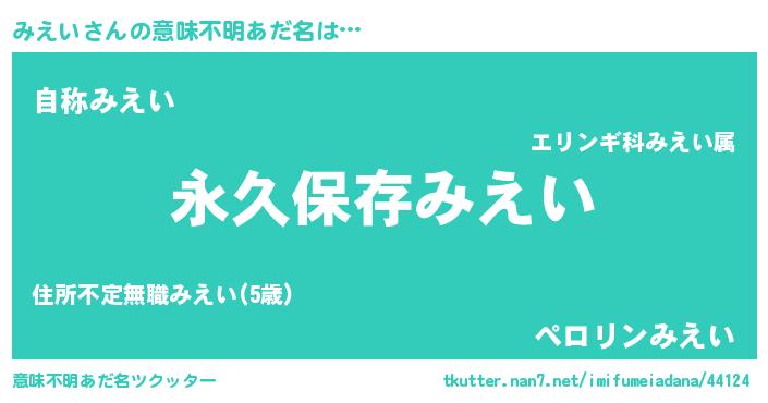 | 男性向けラノベタイトル風あだ名 | 『みえいという概念が存在しない退屈な世界 』 |