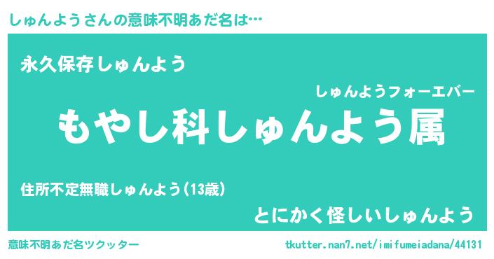 | 胡散臭い通販商品みたいなあだ名 | 『来世でも幸せになれる健康食品…その名も「しゅんよう」』 |