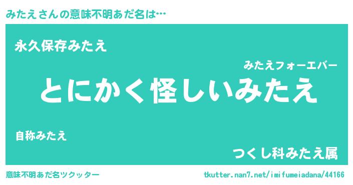 | 女子向けラノベタイトル風あだ名 | 『みたえは平凡を望む』 |