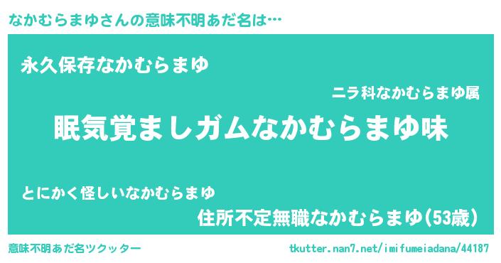 | ヘコむあだ名 | 『なかむらまゆ(爆)』『なかぷりん』 |