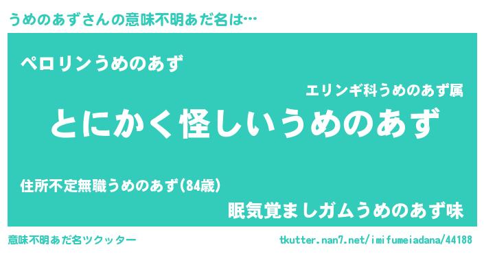 | 胡散臭い通販商品みたいなあだ名 | 『信頼と実績のネックレス…その名も「うめのあず」』 |
