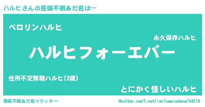 | ファンタジー風あだ名 | 『エターナルハルヒー』『ハルフェル』 |