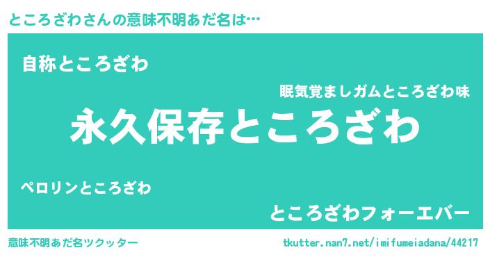 | 男性向けラノベタイトル風あだ名 | 『ところざわという概念が存在しない退屈な世界 』 |