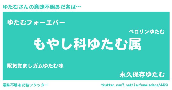 | 男性向けラノベタイトル風あだ名 | 『転生したらゆたむだった件』 |