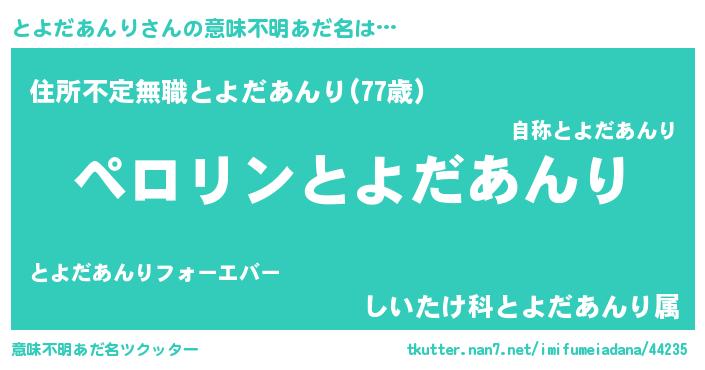 | 男性向けラノベタイトル風あだ名 | 『トヨダアンリアートオンライン』 |