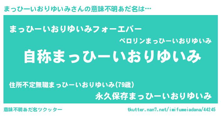 | ヒーロー風カッコイイあだ名 | 『サイバー戦士マッヒーイオリユイミ』 |