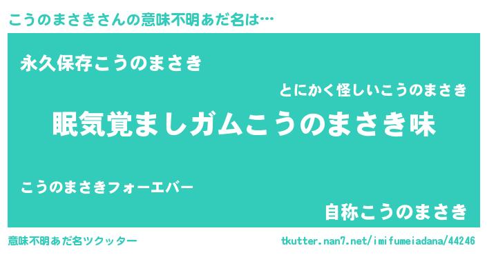 | ヘコむあだ名 | 『こうのまさき(遠い目)』『こうぷりん』 |