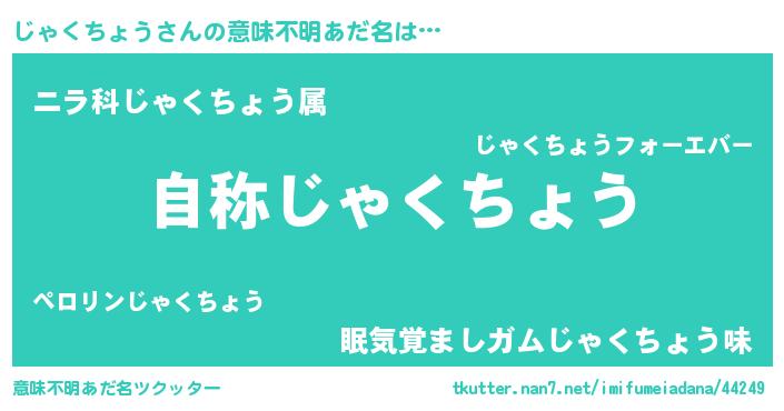 | 男性向けラノベタイトル風あだ名 | 『Re:じゃくちょうから始める異世界生活』 |