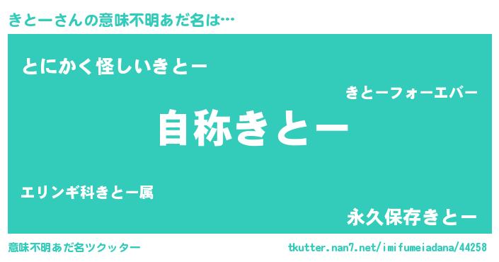 | 女子向けラノベタイトル風あだ名 | 『闇のきとー』『きとーは平凡を望む』 |