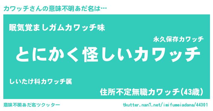 | 胡散臭い通販商品みたいなあだ名 | 『信頼と実績のサプリメント…その名も「カワッチ」』 |