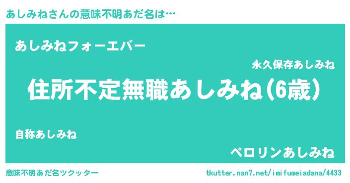 | 男性向けラノベタイトル風あだ名 | 『緋弾のアシミネ』『あしみねの憂鬱』 |