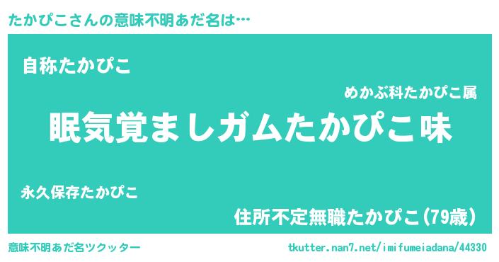 | ヘコむあだ名 | 『たかぴこ(爆)』『なまこ酢』 |