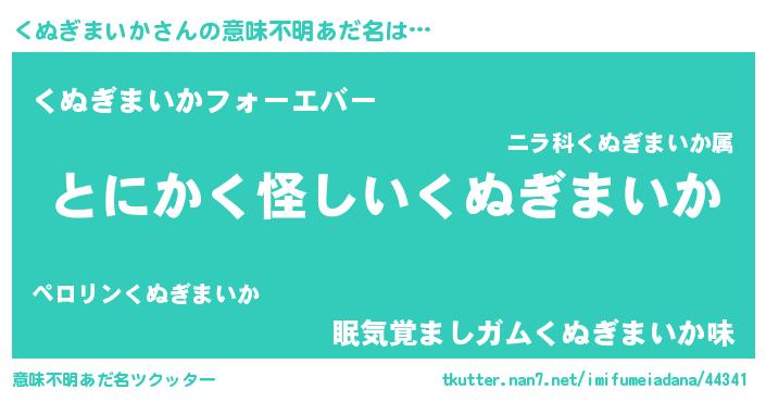 | 欧米人風あだ名 | 『くぬぎまいか・ステッグマイヤー』 |