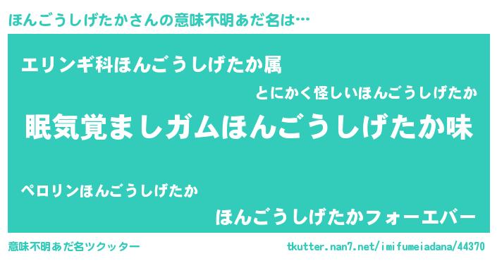 | 欧米人風あだ名 | 『ほんごうしげたか・ステッグマイヤー』 |