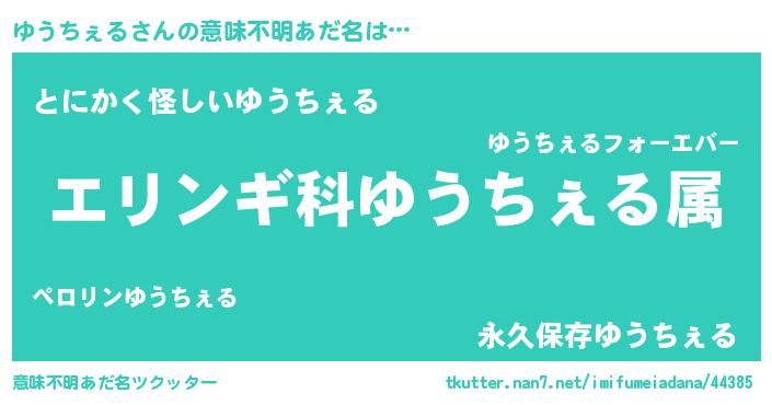 | 男性向けラノベタイトル風あだ名 | 『ユウチェルスレイヤー』 |