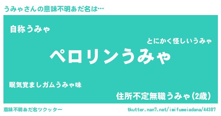 | ヒーロー風カッコイイあだ名 | 『スーパーウミャ』『超時空戦士ウミャ』 |