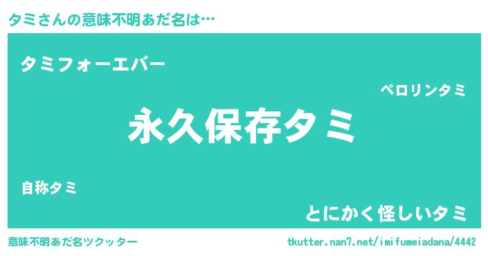 | 男性向けラノベタイトル風あだ名 | 『タミという概念が存在しない退屈な世界 』 |