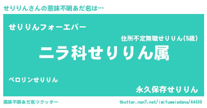 | 男性向けラノベタイトル風あだ名 | 『せりりんに滅ぼされるだけの簡単なお仕事です』 |