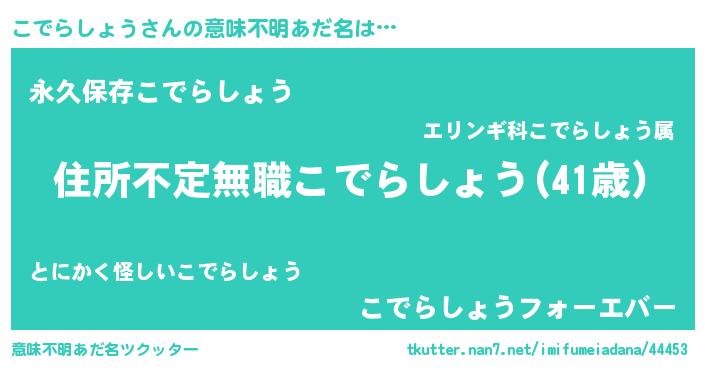 | 女子向けラノベタイトル風あだ名 | 『乙女ゲームの破滅フラグしかない悪役こでらしょうに転生してしまった…』 |
