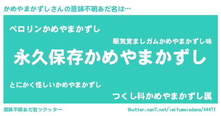 | ヘコむあだ名 | 『かめやまかずし(震え声)』『かめにー』 |