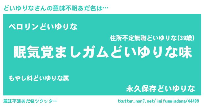 | ヘコむあだ名 | 『どいにゅー』『どいゆりな(苦笑)』 |