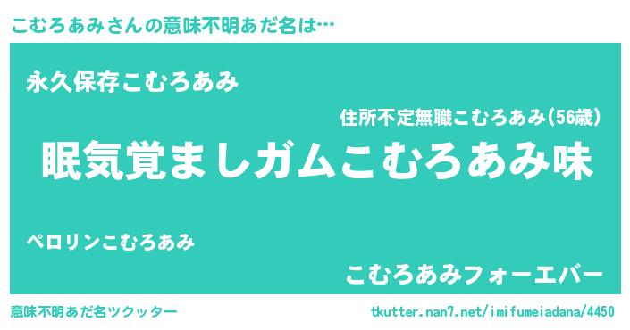 | 男性向けラノベタイトル風あだ名 | 『ノーゲーム・ノーコムロアミ』 |