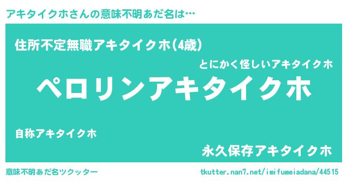 | 欧米人風あだ名 | 『マイケルアキタイクホ』 |