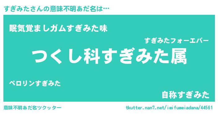 | 男性向けラノベタイトル風あだ名 | 『すぎみた~年齢イコール彼女いない歴の魔法使い~』 |