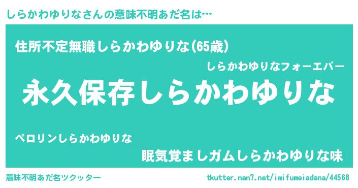 | ヘコむあだ名 | 『しらかわゆりな(遠い目)』『豆乳』 |